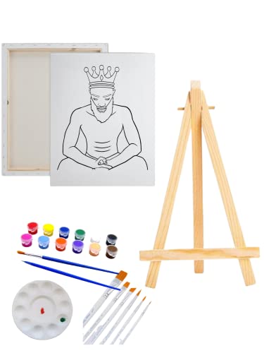 Essenburg Pre Drawn Canvas Painting Kit | King Pharaoh Valentines Pre Drawn Stretched Canvas Kit | Adult Sip and Paint Party| DIY Date Night Couple Activity (S 8X10 PAINT, EASLE, 10 PAINT BRUSHES)