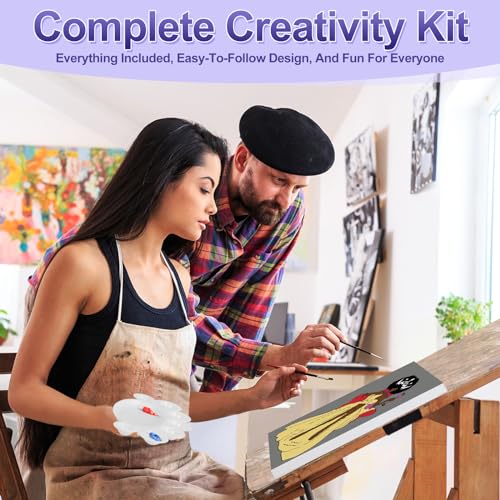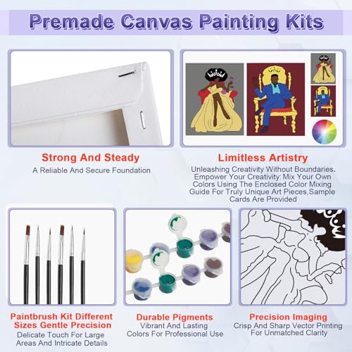 2 Pack Paint and Sip Canvas Painting Kit Pre Drawn Canvas for Painting for Adults Stretched Canvas Couples Games Date Night Afro Elegant Gentleman and Lady Couple Paint Party Valentines