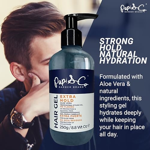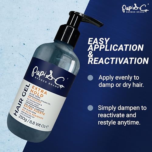 PAPI & CO. Hair Gel Extra Long Hold for Men – Alcohol-Free Styling & Sculpting Gel – Strong Firm Control – Clear Flake-Free Formula with UV Protection – Water-Soluble Natural Ingredients – 8.45 oz