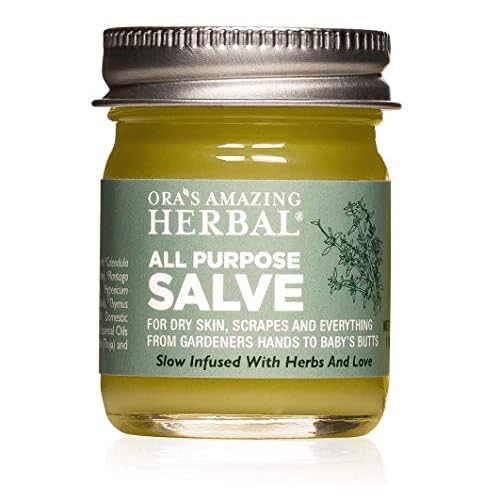 Ora’s Amazing Herbal All Purpose Salve, Natural Healing Ointment, Tea Tree Balm, Comfrey Calendula Thyme Plantain, Hand Salve, Rash Cream, Dry Skin Repair, Itch Relief, 1 oz Glass Jar