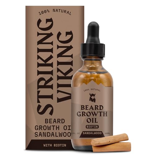 Striking Viking Beard Growth Oil with Biotin – 2 Fl Oz, 1 Pack, Sandalwood – Thickening, Conditioning Biotin Beard Growth Serum for Men with Argan & Jojoba Oil – Facial Hair Serum for Men