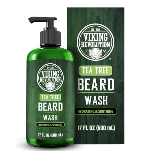 Viking Revolution Tea Tree Beard Wash for Men with Argan Oil and Ginseng Root Extract – Beard Softener and Strengthener Beard Shampoo with Olive Oil Beard Care to avoid Beard Dandruff and Itch (17oz)