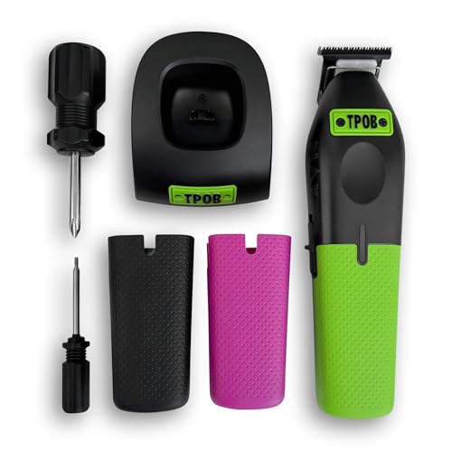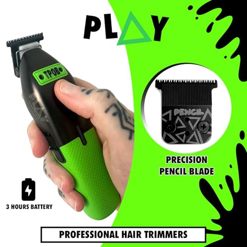 TPOB Play Barber Hair Clippers Trimmer for Men 7000 RPM with Pencil Blade Rubber Green/Black/Pink Grips (Black w/Grips)