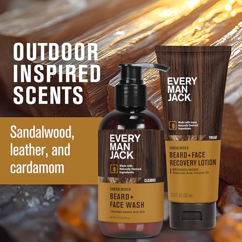 Every Man Jack Men’s Beard + Face Wash & Lotion Set – Subtle Sandalwood Scent – Naturally Cleanse and Condition Your Beard & Skin