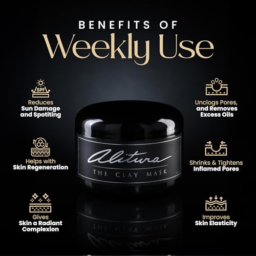 Alitura Clay Face Mask – Exfoliating, Hydrating & Anti-Aging Facial Mask with Vitamin C & Pearl Powder – Pore Cleansing Face Mask for Acne, Blackheads & Glowing Skin – 7.1 oz