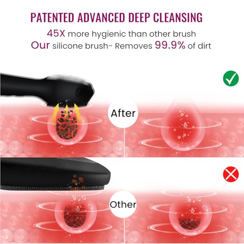 Silicone Face Scrubber Exfoliator Electric for Men Women, Rechargeable Facial Cleansing Brush with Wireless Charging Dock, Waterproof Sonic Vibrating Face Scrub Brush Cleanser for Exfoliating, Black
