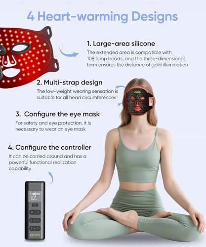 Led Face Mask Light Therapy, Red Light Therapy for Face, 7-1 Colors LED Facial Skin Care Mask, Black