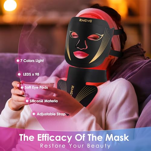 Red-Light-Therapy-for-Face and Neck, 7 Colors LED Facial Light Therapy Mask – Birthday, Christmas, Mothers Day, Valentines Day, Self Care Gifts for Her Women Mom Best Friend Wife Teacher (Black)