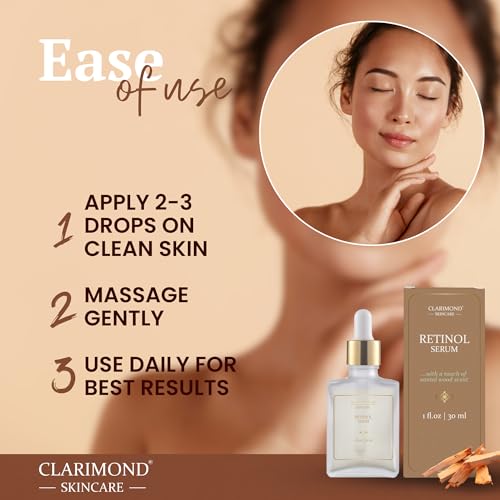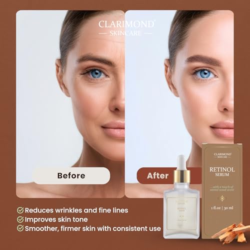 CLARIMOND Retinol Serum for Face – 1% Resurfacing Retinol and Hyaluronic Acid Serum with Niacinamide & Aloe Vera for Anti-Aging, Brightening, Wrinkle Reduction & Dark Spot Treatment